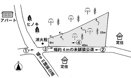 南側が幅約4mの未舗装公道に接する。