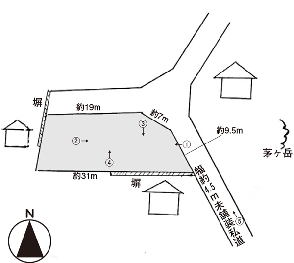 東側が幅約4.5mの未舗装私道に接する(持分あり)