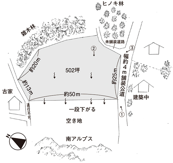 • 森を背負った立地。502坪の土地。① 森を背負った立地。502坪の土地。①