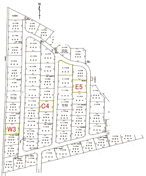 W3:404.38㎡ 400万円、C4:402.95㎡ 400万円、E5:407.89㎡ 400万円