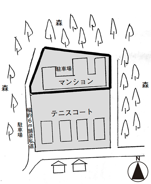 西側が幅約6mの舗装公道に接する。(開発道路)