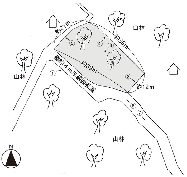 • ④北側、隣地は山林。 ④北側、隣地は山林。