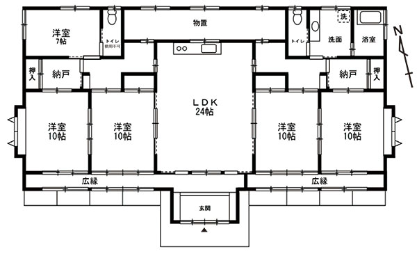 北杜市小淵沢町は、「馬のまち」として知られ、観光スポットも多い場所。本物件は、小淵沢総合支所や小淵沢小学校の西側に位置する便利な立地、家の前地区にある。周囲は、昔からの集落だが、近隣には近年移り住んでいる家も数件ある。建物は、平成3年築の瓦葺平屋建て。当初、父親が2人の娘の住居用に建てた為、24帖のLDKを中心に左右シンメトリーの造りになっている。その後、現在のオーナーが西側の洗面・浴室を約7帖の洋室へとリフォームしている。4部屋ある洋室は、10帖とゆったりとした間取り。南側には、広縁が設けられているので、風通しが良く、室内に明るい陽射しか差し込む。敷地の北側には約270坪の畑がある。