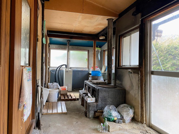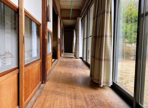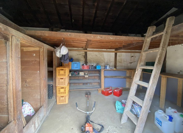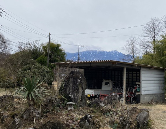 須玉町の市街地、ICから車で9分程。増富ラジウムラインを途中で外れ、坂を下り、橋を渡り、再び坂を上がった静かな場所に位置。集落から外れ、周囲には元々は田んぼや畑であったであろう土地が広がる。ぽつんと一軒家といった風情で、空が広く、ゆっくりと時間が流れる。母屋は築年不詳の大きな農家住宅。床が落ちている部屋が1部屋、全体的に畳がフカフカしているといった状況ではあるが、建具の歪みが少なく、全体としてしっかりとした印象。現在も、定期的に風を入れ、寝泊りし、水道や給湯器といった設備も利用可。2階は物置として使用してきた。635坪の広い敷地には、田、畑が含まれ、売買には農業員会の許可が必要。
