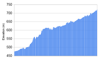 ▲中央道須玉IC~長坂IC間の地形断面図(出典「地図蔵」)。