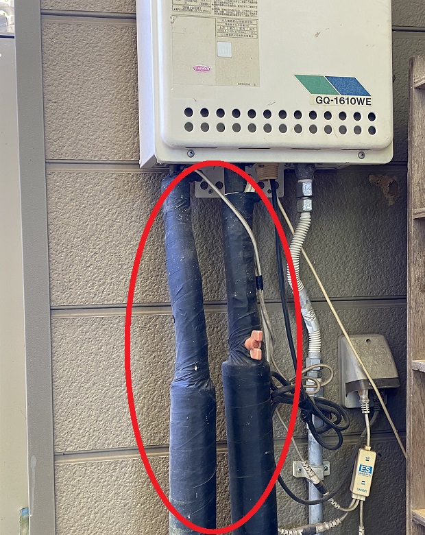 暖房以外で冬の間だけ使う電力がありまして、答えは電熱ヒーターです。凍結防止ヒーター、配管ヒーターとも言うようです。家の裏側にいくと水道管や給湯器の配管にグルグルと太いテープが巻いてあり、その中に電熱線が入っています。サーモスタット付きのものが多く、気温が下がるとスイッチが入り発熱し、水道管などの配管を暖めて、暖かくなるとスイッチが止まります。そうすることで水道管の破裂を防いてくれるのですね。