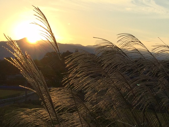 写真:夕日とススキ(北杜市高根町)。