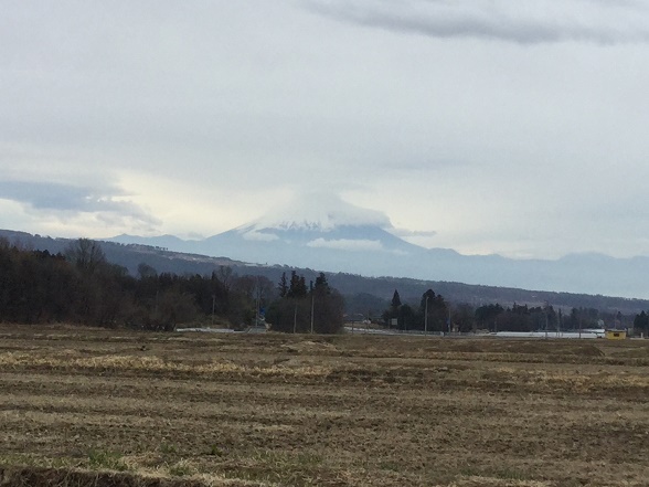 ▲富士山の笠雲。まもなく雨模様の天気(北杜市高根町)。