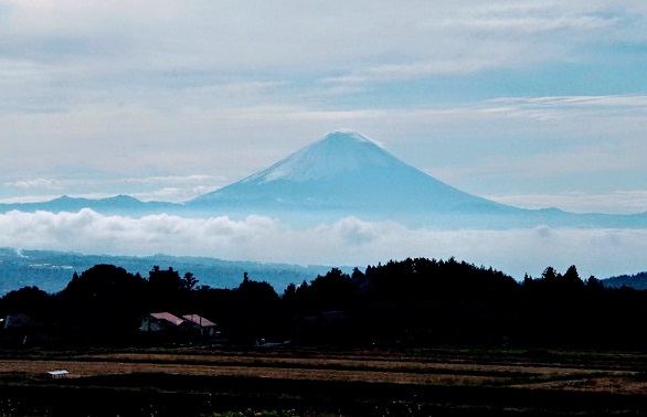 富士山の初冠雪は平年では10月2日なのですが、今年は大幅に早まり9月7日に初冠雪というニュースが流れました。ニュースを見て驚き、早速に八ヶ岳事務所近くの田んぼまで見に行くと、確かに富士山の頂上が白くなっています。まだ北杜市では残暑を感じる陽気で、稲は成長の途中、麓と山の上では随分と気候が違うなと思いました。