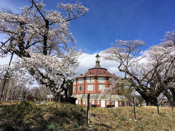須玉町下津金地区に明治、大正、昭和時代に建てられた古い校舎が並ぶ廃校があります。現在はレストラン、お土産売り場もある観光名所ですが、桜が立ち並ぶ校庭はまるで映画のワンシーンのよう。一瞬で時代を遡ったような不思議な気持ちになります。こちらの桜の見ごろも4月中旬頃。