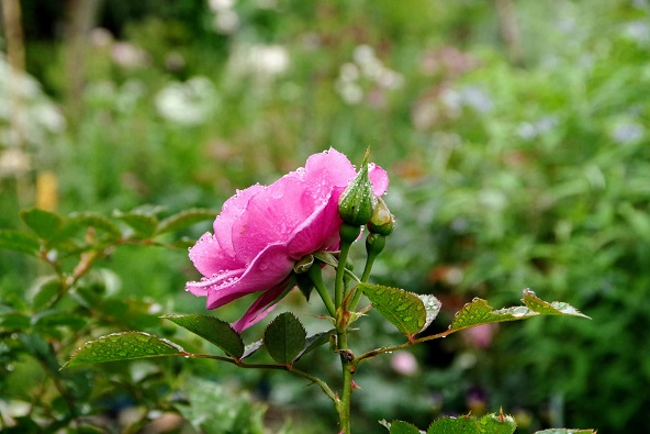 ▲雨をうけ、生き生きとしたバラの花。(北杜市長坂町)