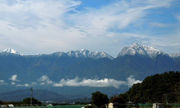 ▲10月中旬。南アルプスがうっすらと雪化粧。(山梨県北杜市)