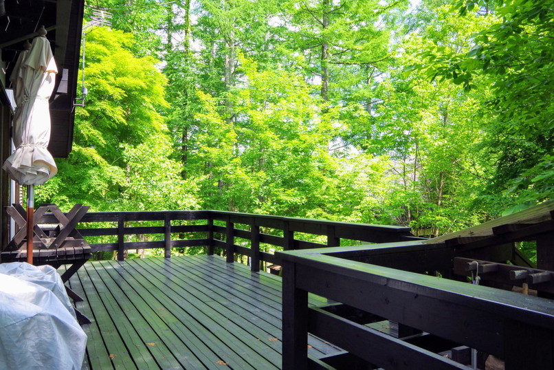 6月の気候は、最低気温は10℃を下回ることは無くなり、最高気温も25度くらいと、朝は涼しくて日中は暖かい。体感として楽な時期といえるでしょう。一方で梅雨の時期にかかり、日常では雨が気になるところですが、そのおかげで森の木々は生き生きとしているように感じます。たまの晴れ間に森の小道に入ると、みずみずしい若葉の間から光が差し込み、緑のトンネルにいるかのようです。森に囲まれたお家の方であれば、若葉の輝き、風にゆれる様を見ながら屋外でお茶を楽しまれるのも良いでしょう。緑の森とウッドデッキの組み合わせは絵になりますね。