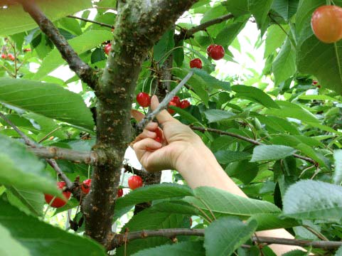 結婚して、縁あって山梨に住んで20数年になりますがここ最近は「そろそろ食べ頃になるよ」と農園のご主人が教えてくれるようになりました。それを聞くと居ても立っても居られず毎年いそいそと出掛けています。さくらんぼは同じ品種でも日当たりや樹によって酸味や甘さが全然違います。まだうちの子供達が小さい頃には手の届く低い所にあるさくらんぼから脚立に登らないと採れない高い所にあるさくらんぼまであちこちで食べてみてお気に入りの樹を見つけては口いっぱいに頬張って楽しんでいました。あの満面の笑みは今でも心に焼き付いています。