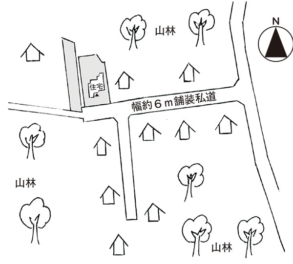 | 道路 | 南側が幅約6m舗装私道に接する。 | ||