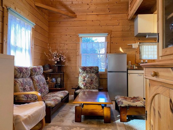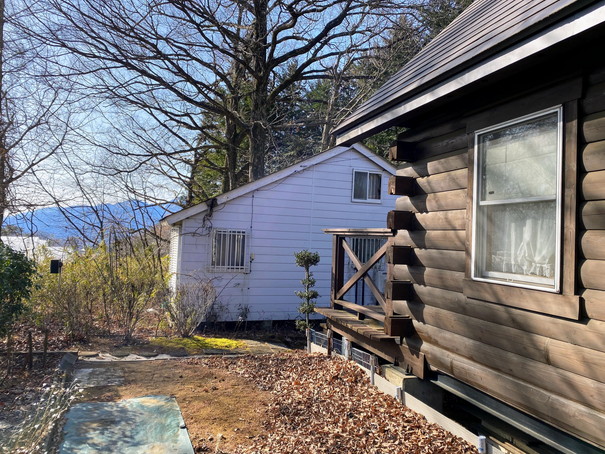 物件へは長坂ICより約4km、車で9分程。田園と集落を抜けると森の中に別荘、移住者宅が点在するエリアとなり、その中の一軒。約51坪のコンパクトな敷地に、小ぶりなログハウスが建っている。平成10年築の建物は大変きれいに使われ、経年より大分新しく感じる。床、天井、壁が全て木の温かみのある空間。玄関横のリビングは吹き抜け天井で開放的。1階、2階ともに、仕切りの無いワンルームとなっており、一人暮らしや別荘向き。駐車場は西側の私道にはみ出す形で利用をしている。お庭にはブルーベリーなど植栽があり、ガーデニングを楽しみたい方にもお勧め。本物件の北西約70mの距離に中部横断道自動車道の計画がある。