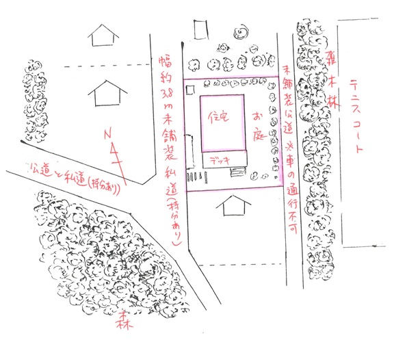 | 道路 | 西側が幅約3.8mの未舗装私道に接する。(持分あり) | ||