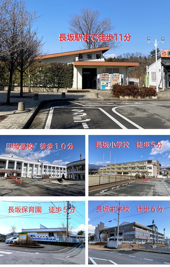 | 生活 | 長坂総合支所・郵便局へ約900m、コンビニへ約750m、保育園・小中学校へ約300~400m、高校へ約700m、スーパーへ約2.5km、甲陽病院へ約1.9km | ||